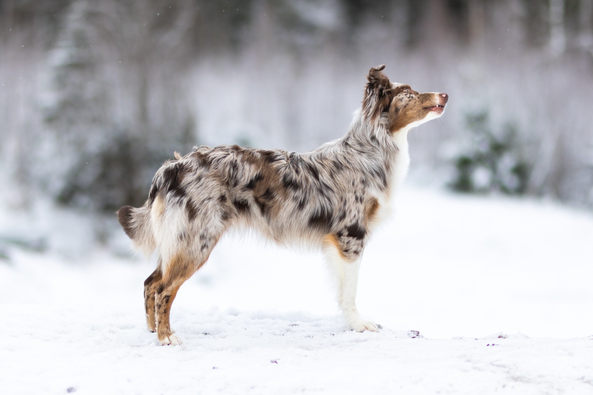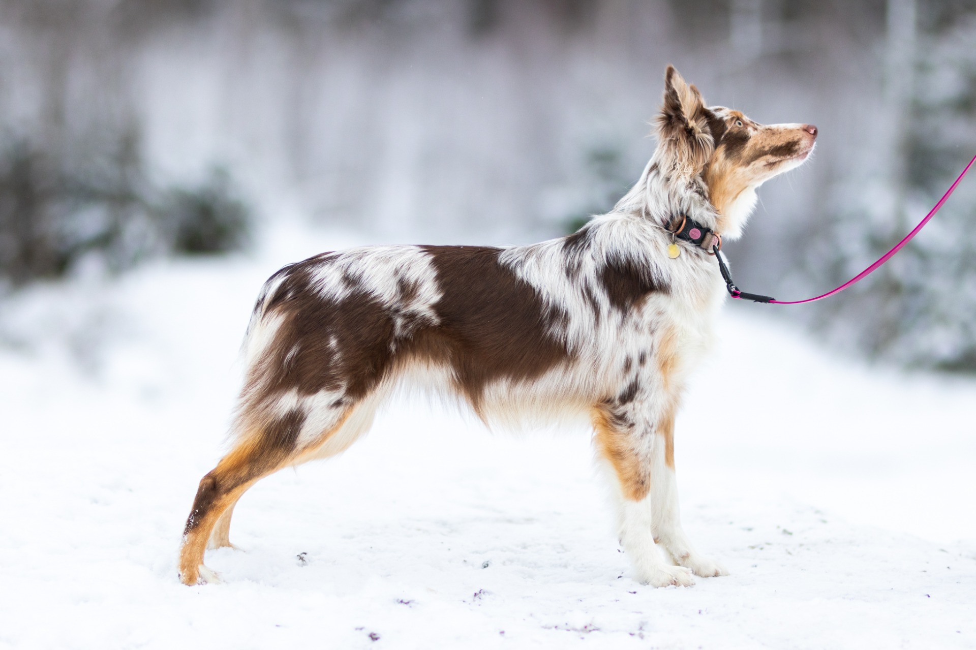 - narttu, red merle valkoisin ja tan -merkein, töpö häntä
