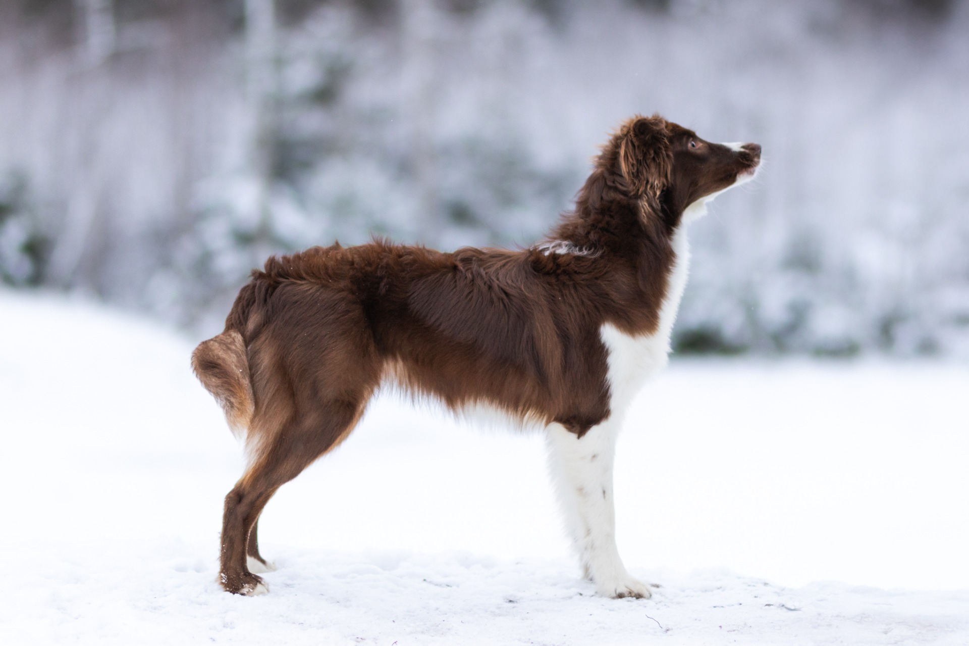- red merle valkoisin ja tan -merkein, luonnontöpö häntä