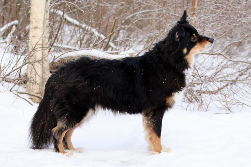 - narttu, musta valkoisin ja tan-merkein, pitkä häntä
